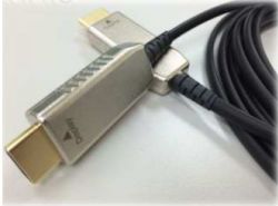 150-m in maximum. Moreover, the ultra-low-power consumption feature enables the link without external electrical power plug required. With user-friendly advantages, just plug-and-play the cable can bring the high-definition video display easily. This cable can support HDMI maximum data rate up to 3.4-Gbps per lane with light weight, flexible, and ultra-small bending radius of only 57-mm via notable fiber technology. This HDMI Active Hybrid Cable can be widely deployed in home theater, convention center, outdoor advertising or broadcasting, and so on, for high-definition video display applications.