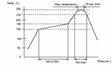 Pre-heating: 150℃/60-120S, Soldering 350℃ (at the tip of soldering iron)/2S